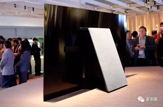 其次,创造性地将音效与电视本身的设计融为一体。在2017CES上亮相的A1新品,首创银幕声场技术,是整个面板成为声音共振的载体,这样可以摆脱扬声器对电视体积的占用。这一创新借助OLED屏幕的优势,电视背部类似激励器的震动部件,完成电、磁、力的快速转换,产生驱动力,驱动OLED面板发声,OLED柔性的特质足以承受极细微的高速震动。不仅使电视整体7.8mm更纤薄,而且实现相当高的屏占比。这也为接下来OLED电视的再造指明方向和路径。